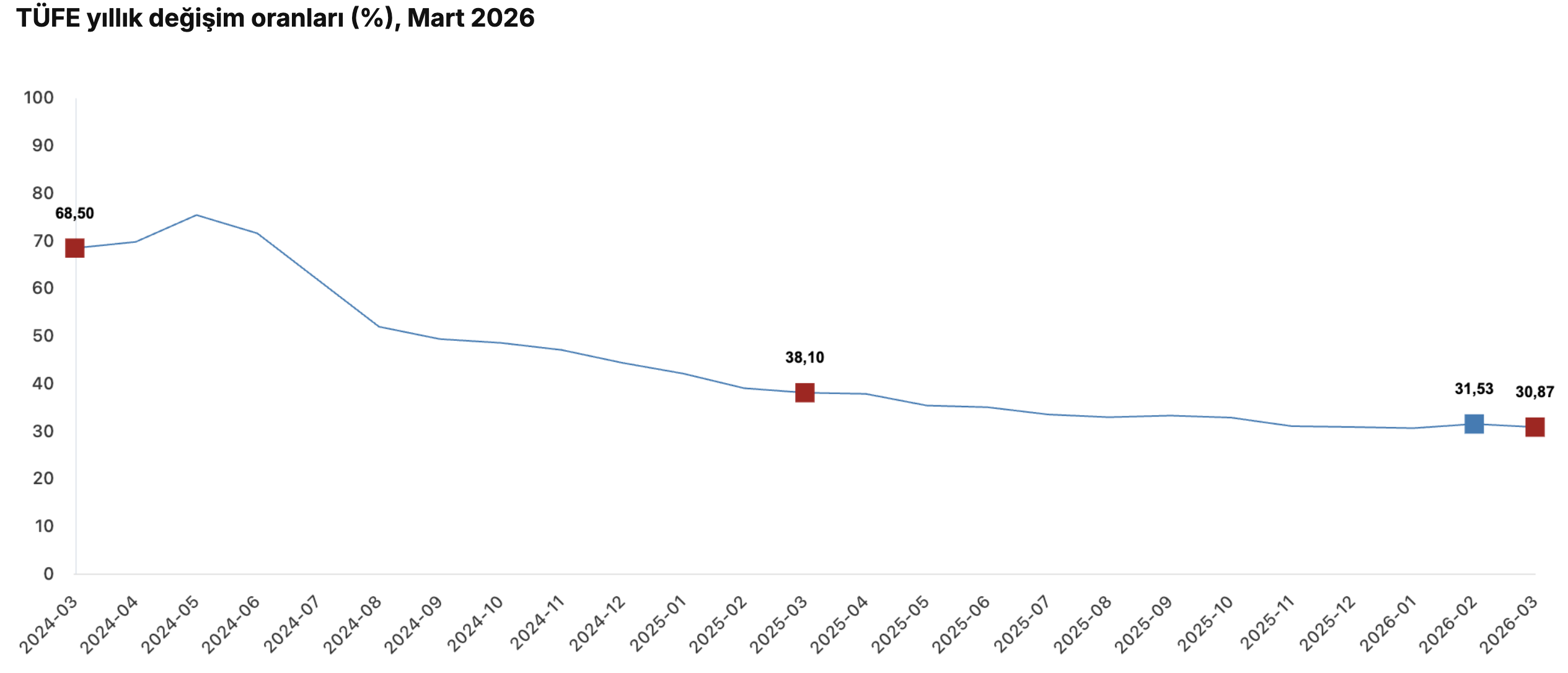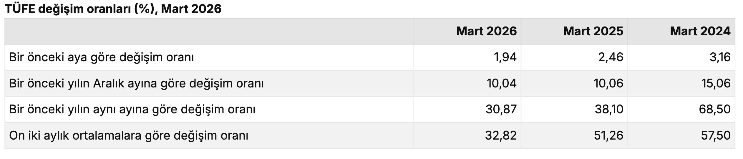 TÜİK tarafından yayımlanan verilere göre, tüketici enflasyonunu gösteren Tüketici Fiyat Endeksi (TÜFE), mart ayında: